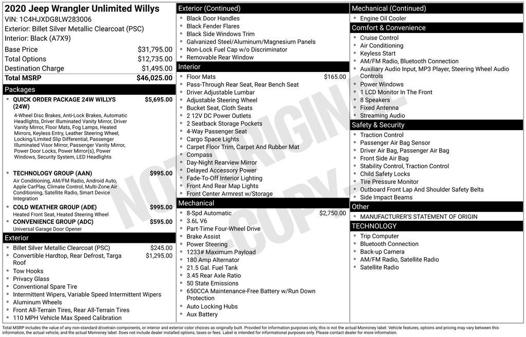 2020 Jeep Wrangler Unlimited Willys
